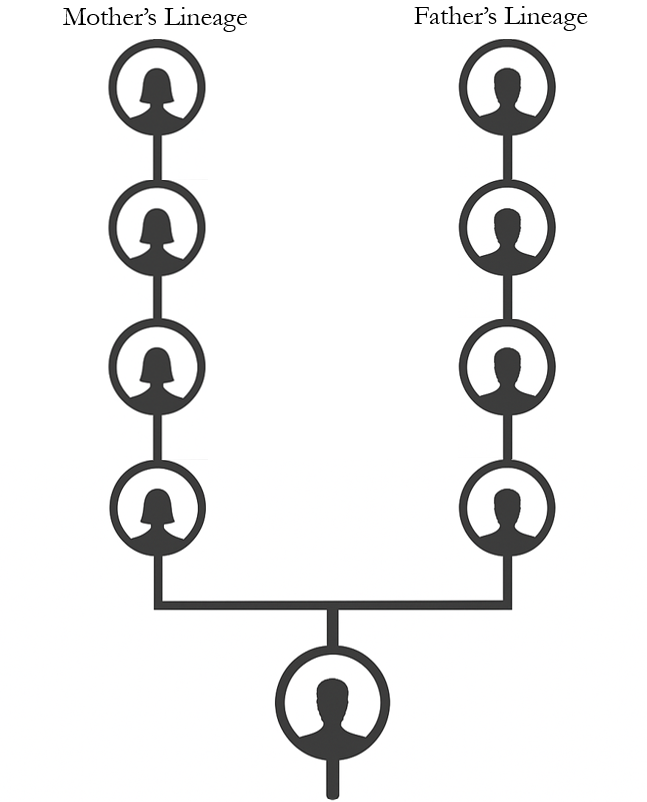 An ancestral chart stretching back four generations from the client.